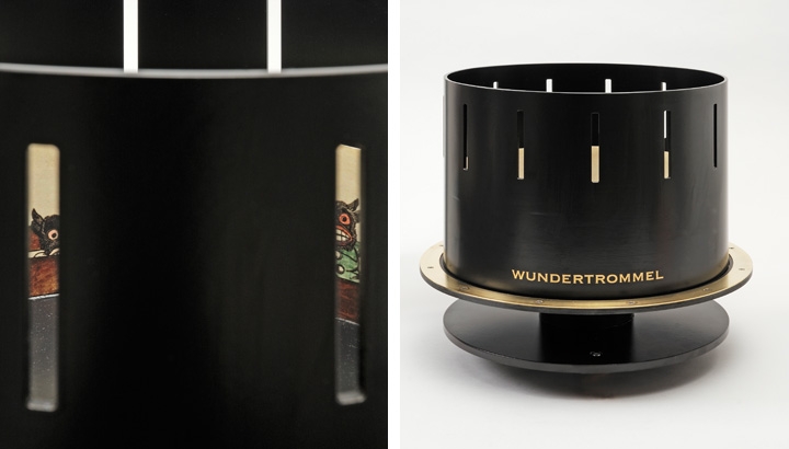 Filmanimation der Phasenbilder im Zylinderinnern bei Drehung der Trommel. Aluminium, Messingelemente und Sondertypo als projektbezogen vereinheitlichtes Design. | Konzept: ATELIER BRÜCKNER, Stuttgart | Umsetzung: id3d-berlin mit Frank Fietzek -